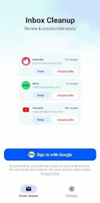 В дополнение к отписке от нежелательных отправителей, Clean Email предлагает возможность удалить существующие электронные письма из этих источников и автоматически удалять новые сообщения в будущем. Эта функция помогает поддерживать порядок в почтовом ящике без необходимости вручную сортировать электронные письма. С безопасным входом с использованием вашей учетной записи Google, приложение придает приоритет конфиденциальности пользователей, гарантируя, что содержимое электронной почты не хранится и не передается.